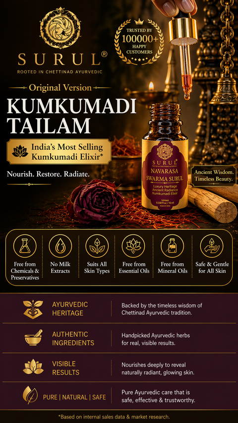 Surul Chettinad is your one-stop destination for the best Ayurvedic products for hair care, body care, and face care. We are dedicated to providing our customers with natural and effective solutions for all their beauty needs. Our products are made with traditional Ayurvedic formulas that have been passed down for generations to ensure the highest quality and purity.